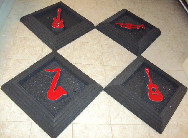 (4) Stylish Music Instruments Tiles with Foam Columns size: 24” x 24” x 4” Thick $110.85 with vinyl fabric