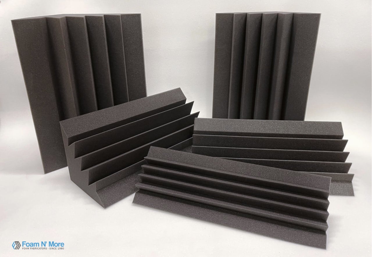 Bass absorbers dampen low frequency sound waves by reducing their resonance in rooms. The design prevents unwanted reflections and enriches sonic conditions on a comprehensive scale. Mastering rooms, home entertainment rooms and concert halls are but some of the many spaces in which bass absorbers enhance sound quality. Install the Bass traps next to each other for a flawless look and are a popular choice for sound control in industrial environments. You can expect a full line of high-quality acoustical foams, barrier composites, and sound-absorbing materials. In addition to providing a full range of standard stock items, we are able to manufacture a wide range of different composites.