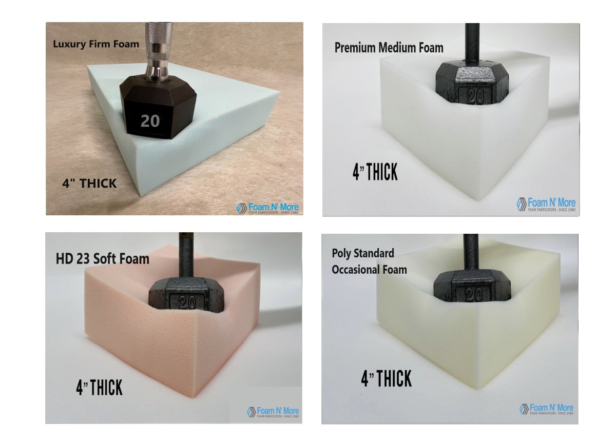 Premium Medium High Density: This foam grade is medium high-density foam. If you are looking for support, comfort, and durability then this foam is for you. This kind of foam is rubber based which means it will not break down like ordinary foam. It will maintain its original shape and density for many years. This is our most popular foam for seat cushion replacements and is highly recommended.