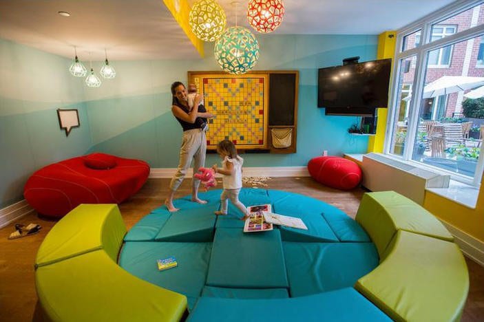 This is a space where children can expand their gross motor experiences and differentiate colors and shapes.