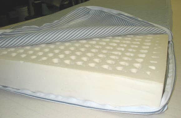 Latex mattresses are made of 100% natural materials. Latex is made from a rubber tree. When the bark of the tree is cut, a milky liquid expels and is subsequently whipped and baked.