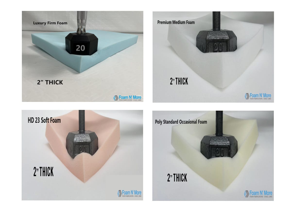Premium Medium High Density: This foam grade is medium-high density foam. If you are looking for support, comfort, and durability then this foam is for you. This kind of foam is rubber based which means it will not break down like ordinary foam. It will maintain its original shape and density for many years. This is our most popular foam for seat cushion replacements and is highly recommended.