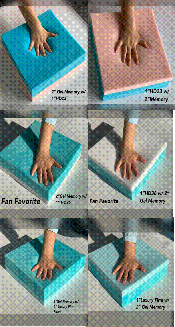 * 2” Thick Gel Memory Foam 4LBS with 1″ Firm Luxury Foam