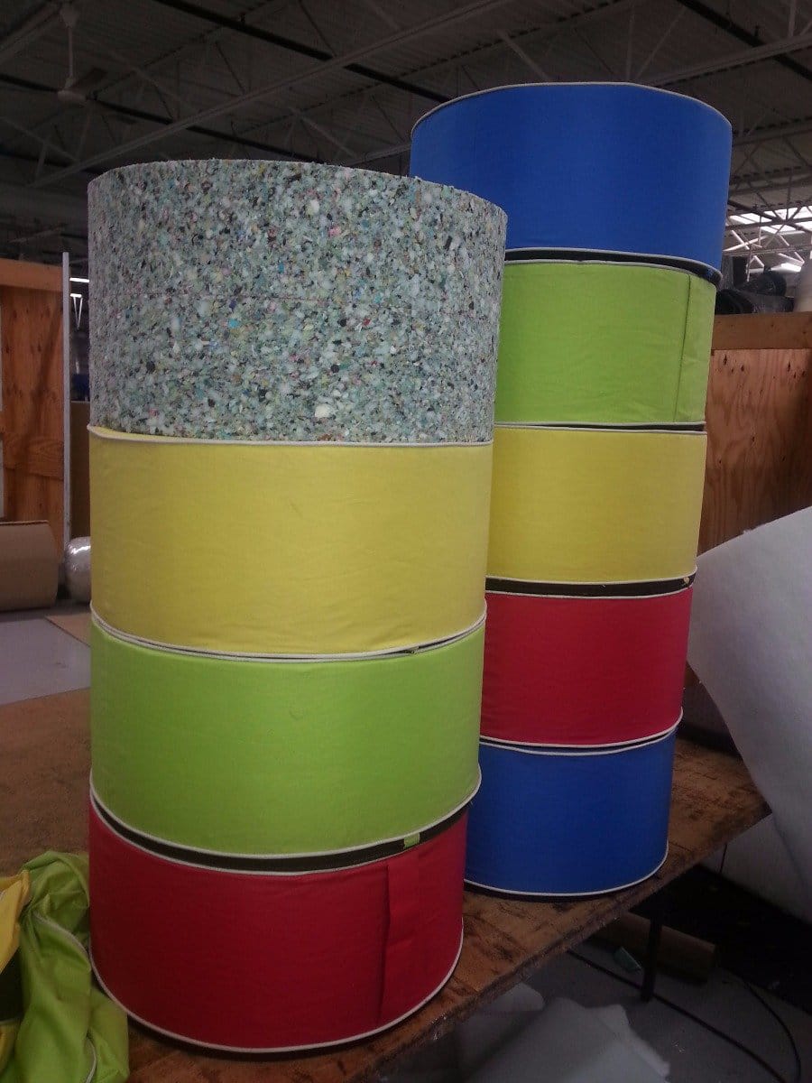 Rebonded Foam can be custom in Oval, Round and square shape sizes are available. You may also mail in your own fabric if you would like to sew a cover for you.