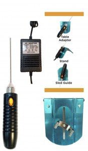 The Tough 6″ Heated Rod ONLY with Pro Power Supply and Versatile Sled Guide, Table Adaptor, and Stand. The Stainless Steel Rod has high-tech insulation that allows continuous duty without shutting down to cool. Ergonomic stay on the power switch. It heats to over 750 degrees Fahrenheit within one minute. It can turn corners and cut circles. It is offered in 110 and 220 volts.