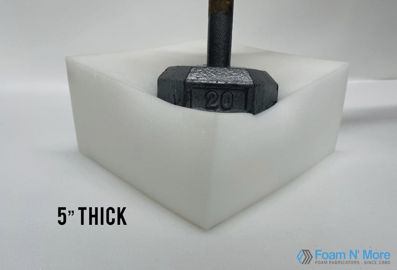 Premium-Medium High-Density Foam otherwise known as HD36; is an open-cell high-density foam that is known for its amazing comfort and durability. This foam is commonly found in sofa cushions five inches thick or thicker and is also the most popular foam used for our foam mattresses. This foam is known as our “Fan Favorite” because of its spectacular support and comfort. With the ability to support but also conform to the body, our customers have typically found this foam to be the “go-to” foam for many of their applications. This medium-density foam is commonly found in foam mattresses, foam toppers, sofa cushions, ottomans and benches, seat pads, and camping mattresses. This foam is high-density and rubber-based so it’s made to last 10-14 years with daily use and will support all adult weight, shapes, and sizes 250-300 lbs or less. This foam will not break down like standard foam and will hold its shape and support for many years.
