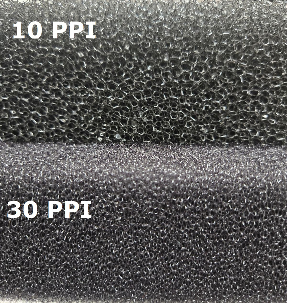 Regicell filter foam is a pore controlled polyester foam with a defined and uniform pore size. The number of pores is defined in PPI (pores per linear inch). The cell membranes are completely removed by an additional reticulation process. The completely open pore structure gives extremely good flow characteristics.