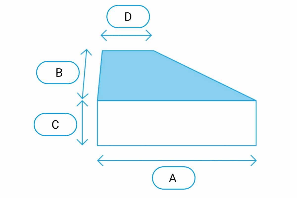 Right and left side trapezoid shape is available in any size for seating cushion in a bay window area or to full a seating corner.